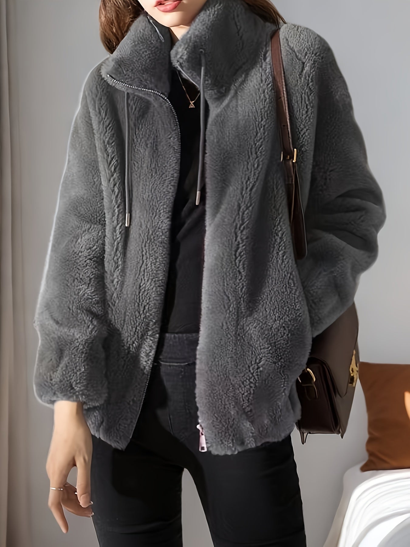 Magdalena | Miękka polarowa kurtka z kołnierzem
